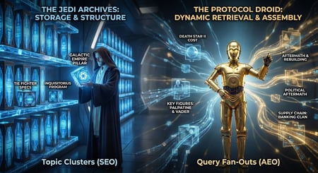 The most critical concept to grasp in this transition is the difference between the Topic Cluster (how you organize content) and the Query Fan-Out (how AI fetches content).