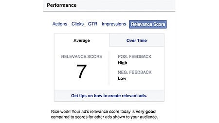 - Scores make it easier for marketers like you to test ad creative options before you run a Facebook campaign. You are now able to test different images and marketing copy, with different audiences and see which combinations earn the best relevance scores.