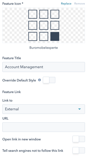 Enter the name of the feature or item here, along with any additional descriptive text or links. This is a standard rich text module.