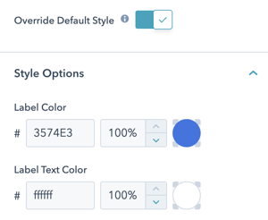When enabled, you'll be presented with the ability to set custom colors for your label and label text (if you enabled the Featured Price Plan toggle).