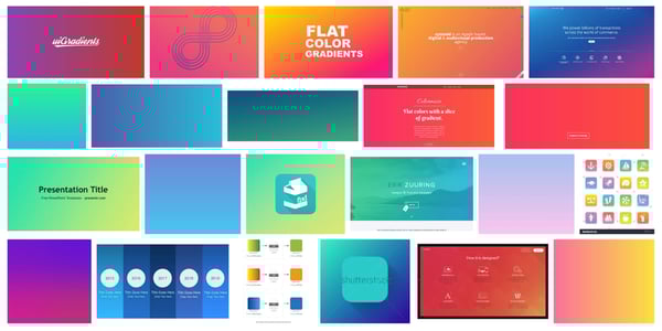 Open up any app on your smartphone, or navigate to a landing page on most websites, and you’re bound to see it: the “flat gradient.” Although the term is a bit of an oxymoron, the past couple of years of web design have been flush with this design element that’s essentially a mix of a high fidelity gradient and flat color palette. Give the old Google a whirl for the term “flat gradient” and you’ll see what I mean. My image results are below: