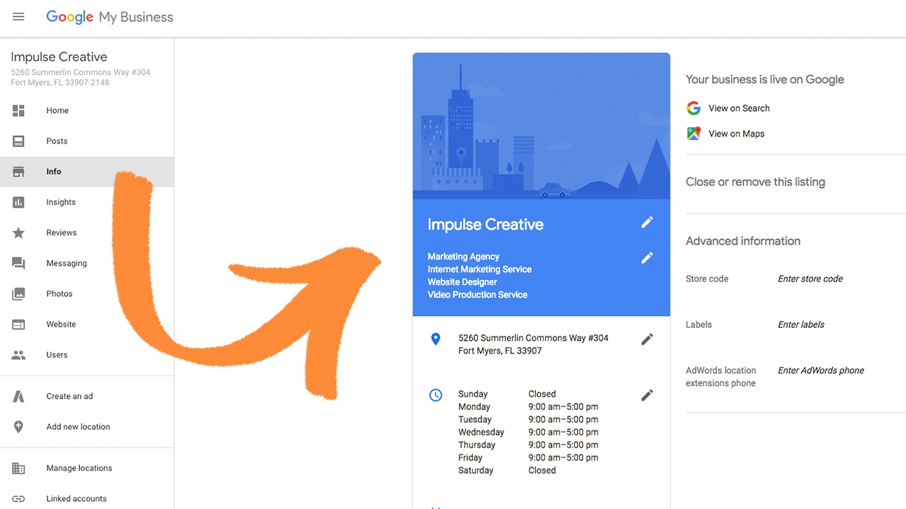 - Set up your profile. This part isn’t hard to do. Just add your hours, phone number, pictures, and more. Basically, include as much as possible to optimize your profile!