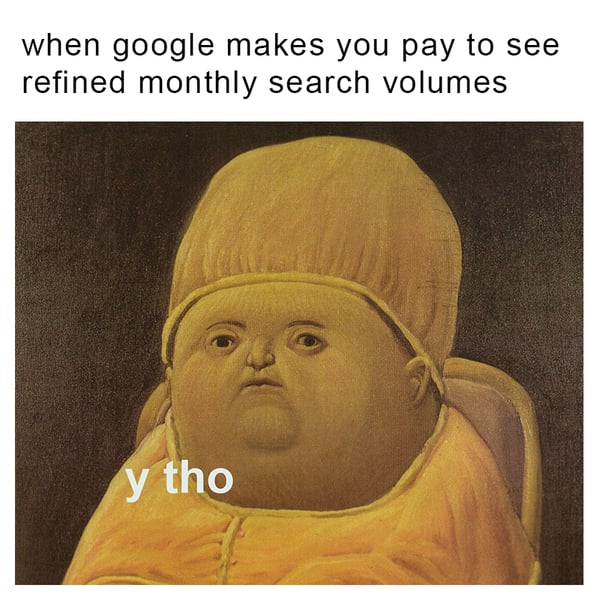 Whereas, previously, a searcher would be able to see more exact searches, such as an average of 300 queries a month for a particular phrase, Google Ads began to show wide ranges of search volumes (like 10,000 to 100,000) for those who weren’t spending money on a live campaign.