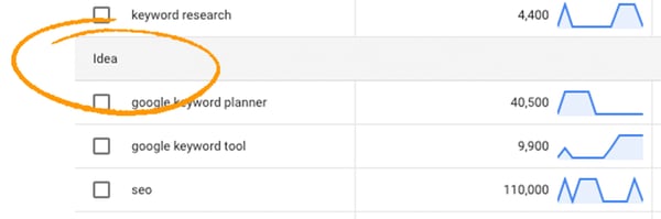 6. Peruse your results. The keyword finder tool also serves up a plethora of “Ideas,” which are phrases that are similar or related to your entered queries and are often referred to as semantic search terms. This is where your keyword research begins.